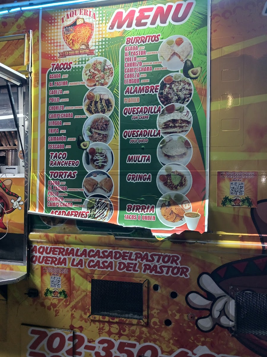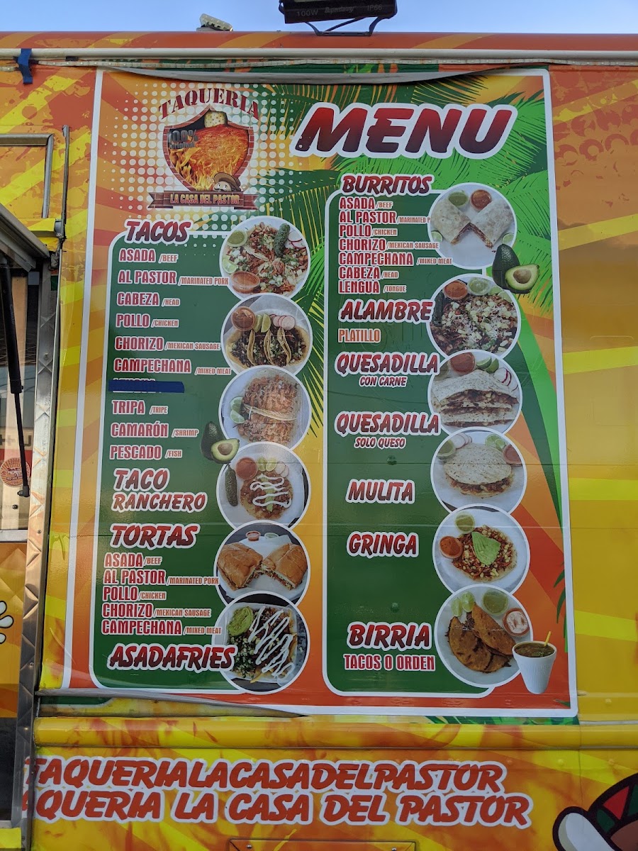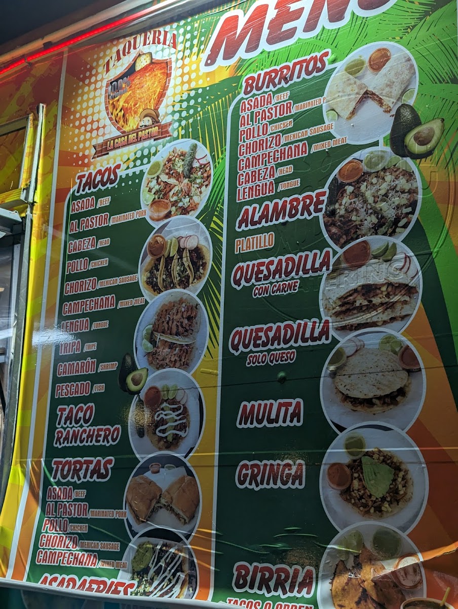 The menu at Taqueria La Casa Del Pastor offers a delightful variety of authentic Mexican dishes that are sure to satisfy any craving. For taco lovers, the restaurant features options like Asada, Al Pastor, Cabeza, and Pollo tacos, each packed with flavor. If you're in the mood for something heartier, the Burritos section has mouthwatering choices, including Asada, Al Pastor, Pollo, Chorizo, and the standout Campechana burrito. For a satisfying sandwich, their Tortas come in familiar favorites such as Asada, Al Pastor, Pollo, and Chorizo. In addition to these, the menu includes several specialty items, such as Lengua, Tripa, Camarón, Pescado, and the flavorful Taco Ranchero, making it easy to explore a range of tastes. Whether you're in the mood for tacos, burritos, or tortas, this spot has something for everyone, all served with the vibrant and bold flavors of traditional Mexican cuisine.